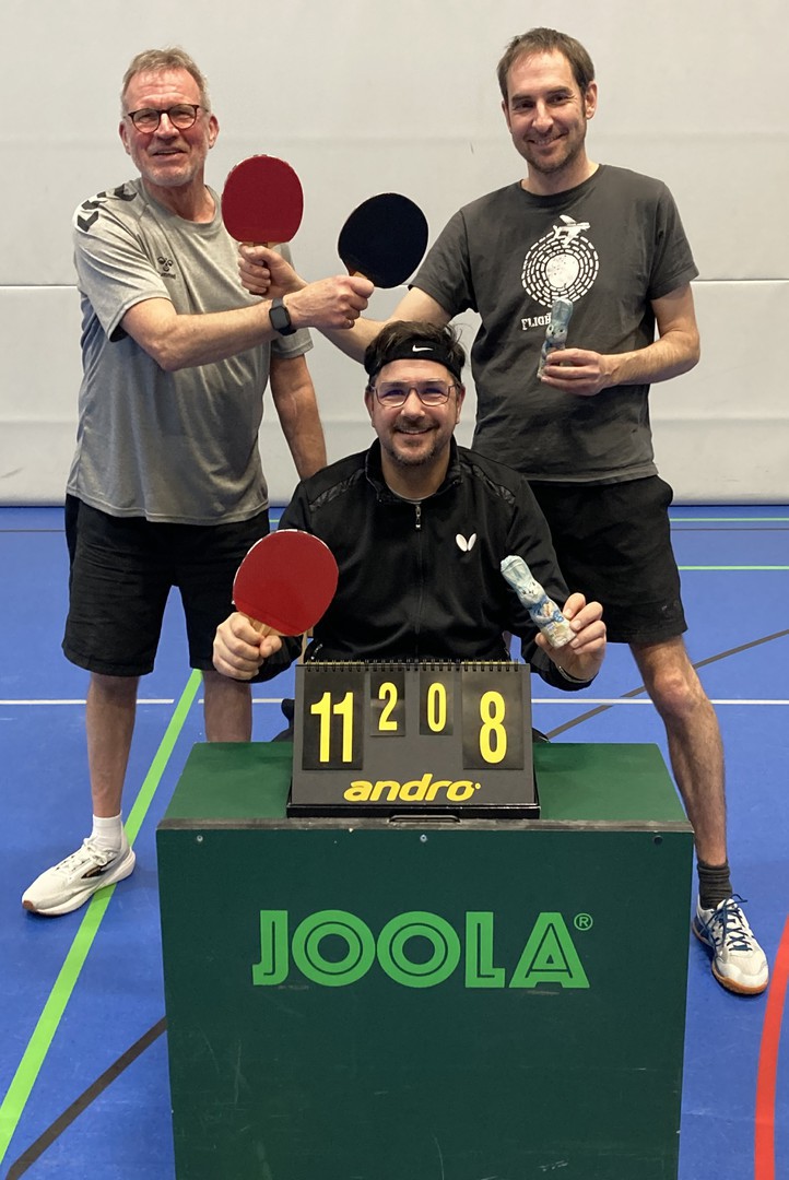 Da Spieler aus allen sechs Mannschaften die kürzlich ausgetragenen Vereinsmeisterschaften der TTSG Leinetal zur Vorbereitung auf die nahende Punktspielrückrunde nutzten, konnte sich Sportwart Vassilios Kula bei 23 Teilnehmern über die größte Beteiligung seit Jahren freuen. Im Einzel wurde die Vorrunde in sechs Gruppen im System "jeder gegen jeden" gespielt. Die Erstplatzierten jeder Gruppe spielten danach in der Hauptrunde, die Letztplatzierten in der Trostrunde im K.-o.-System weiter. Im ersten Halbfinale der Hauptrunde kam es zur Endspielbegegnung des Vorjahres zwischen Titelverteidiger Luis Runge und Vassilios Kula. Wieder hatte Runge bei seinem knappen 11:8 Sieg im entscheidenden fünften Satz die Nase vorn und zog ins Finale ein. Dort traf er auf Anna Rump, die aktuell für den MTV Engelbostel/Schulenburg in der Verbandsliga an der Platte steht. Sie hatte in ihrem Halbfinale Daniel Griese nach verlorenem ersten Satz mit 3:1 bezwungen. In einem ausgeglichenen Finale setzte sich Luis Runge mit 8:11, 11:8, 11:7 und 11:8 durch und sicherte sich nach den Meisterschaften 2024 und 2025 seinen Titel-Hattrick. Den Pokal für den Trostrundensieger gewann Olaf Skirde nach einem 3:1 im "kleinen Finale" gegen Irina Kasprick.